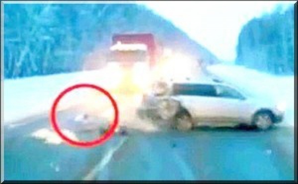 Une petite fille de deux ans a frôlé la mort à deux reprises en quelques secondes. Alors que la voiture dans laquelle elle se trouvait percute un camion, elle est éjectée de l'habitacle et finit sur la route où un deuxième camion parvient à l'éviter de justesse à quelques centimètres près. On savait que les routes russes...