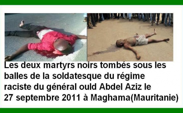 Les deux martyrs noirs tombés sous lesballes de la soldatesque du régimeraciste du général ould Abdel Aziz le27 septembre 2011 à Maghama(Mauritanie). Abdallahi Sarr dit Demba Sarr