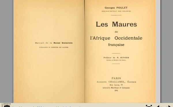 A propos d'histoire, voici un livre qui en fera bondir certains : " Les maures de l'Afrique Occidentale Française "